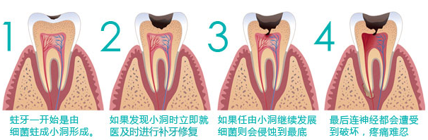 2、蛀牙牙齿已经形成牙洞,若蛀牙情况深入牙神经的位置,为了避免牙齿坏死,更大限度的保存牙齿,更需要进行牙齿根管治疗后才能再决定是补牙还是做其他的牙齿修复。如果此时不进行及时治疗,牙齿很有可能保不住。所以蛀牙的治疗一定要及时。