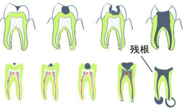 我们先看一下牙齿是怎么从一个小洞变成拔牙、种牙的。