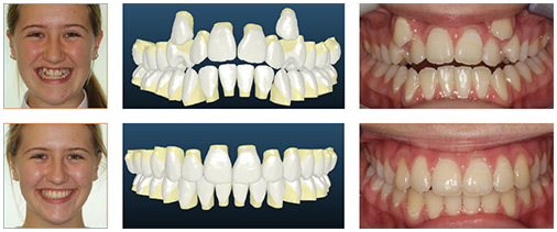 无托槽隐形正畸:隐形矫治器是将牙颌模型三维成像,并按照医师的设计制定矫治方案, 在计算机上进行三维图像处理和精细的牙位调整,并进一步将每一步牙位变化反映到计算机辅助制作的透明牙套上,通过患者戴用一系列的牙套, 不断的小范围的移动牙齿使错位牙得以矫正。