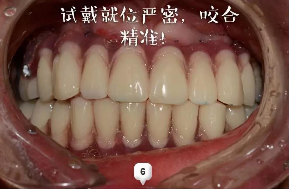 经过一周的恢复时间,进行了下半口的种植,曹主任联合种植体加工厂的技师赶工制作完成了全口无牙颌的即刻修复,历时12个小时,手术结束时已经是晚上10点多,患者又开车赶回了北京。