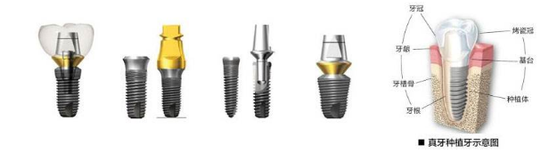 目前市面上的种植体种类分为两大类:一类是韩式种植体,一类是欧式种植体。种植牙材料大部分是钛,钛常广泛应用在医疗上如人工骨及关节、心脏瓣膜、心脏起博器、牙种植体等。