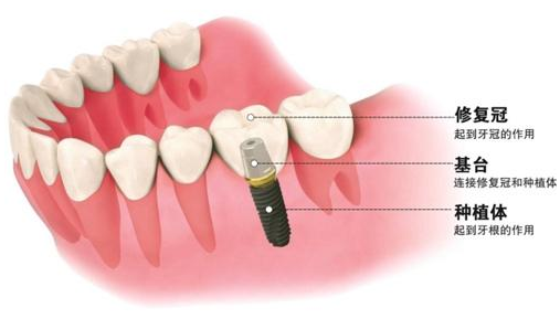 种植牙:采用人工材料制成种植体(一般类似牙根形态),经手术方法植入组织内(通常是上下颌)并获得骨组织牢固的固位支持,通过特殊的装置和方式连接支持上部的牙修复体。