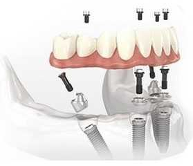 All on4种植技术是欧美先进的口腔种植技术,主要针对于全口无牙或者半口无牙的情况下,利用4颗种植体,于两颗前牙部位的种植体垂直植入牙槽骨内,而两颗中远部位的种植体采取倾斜角度植入牙槽骨内,然后在种植体的基台上安装拱形连桥牙冠,这样整个种植牙的受力就呈现出拱形的特征,完成口腔种植修复。