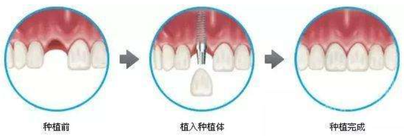 种植牙指的是一种以植入骨组织内的下部结构为基础来支持、固位上部牙修复体的缺牙修复方式。它包括下部的支持种植体(dental implant)和上部的牙修复体(dental prosthesis, implant-supported)两部分。它采用人工材料(如金属、陶瓷等)制成种植体(一般类似牙根形态),经手术方法植入组织内(通常是上下颌)并获得骨组织牢固的固位支持,通过特殊的装置和方式连接支持上部的牙修复体。