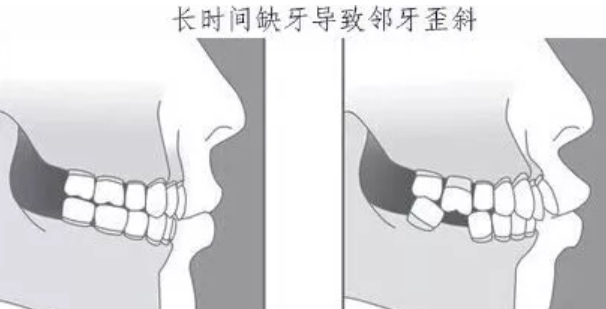 1. 长期缺牙健康牙齿也会受到影响,缺牙后邻牙稀疏、缺少支撑,咬合关系出现错乱,导致邻牙向缺牙处歪斜生长,缺牙位置对应的牙齿也会因为没有阻挡而越来越长,最终会导致牙齿松动甚至脱落。
