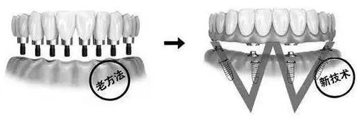 传统种植牙技术需要植入16-24颗种植体,才能达到对全口牙齿的承重受力要求。半口牙修复仅需4颗种植体,全口也只需8颗,可节省1/2以上费用。
