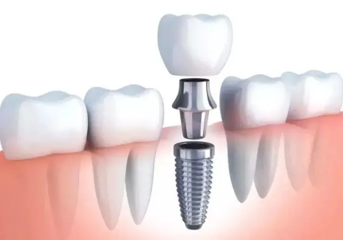 首先,医生会在牙槽骨上钻出来一个洞,将种植体植入、缝合;等待牙槽骨与种植体结合完成,之后再向上搭建安装连接扭(基台);再在上面加装牙冠。这样,一颗牙的种植就完成了。