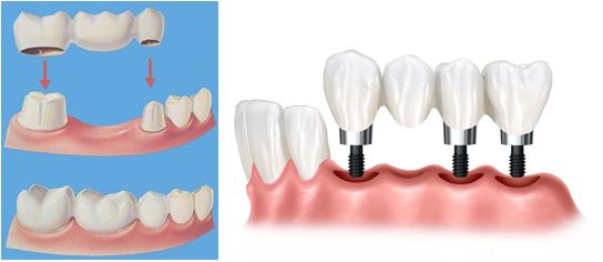 烤瓷桥修复是将缺牙位置两边的邻牙磨小,并以两颗牙齿为根基套上连冠的烤瓷桥,然而这样的修复方式会有损邻牙的健康,增加邻牙的负担。